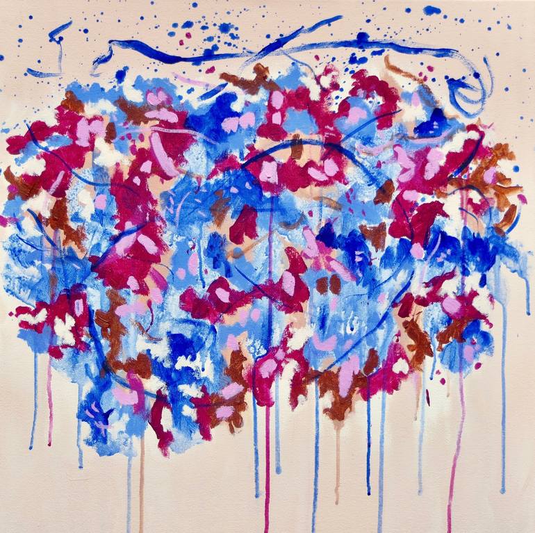 Slim Chance is a 24X24 inch acrylic painting created using intuitive gestures. Mark-making, drips and spatters all contribute to an imaginative image. The 1.5 inch deep edges are painted; no frame is needed. The artwork arrives wired and ready to be displayed with your art collection.