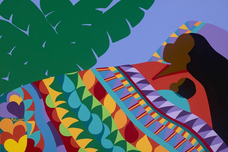 Celebrating the universal theme of motherhood, and the spiritual bond between mother and child. This painting is painted on the front of the canvas and the sides (gallery style).