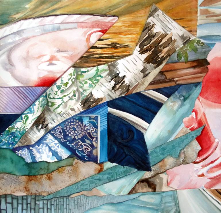 I’m interested in relationships, and my latest paintings focus on relationships in their simplest form. The imagery may initially look like a collection of unrelated images but they become cohesive when you focus on a common path of color or similarity in texture. Focusing on the small elements in a large scale allow you to make sense of the chaos and appreciate the beauty. These pieces are created from small torn paper collages that I use as a sketch for the final, much larger, painting. The compilation of these scraps of textures, colors, and patterns breathe a new life when the are interpreted in a painted form.
