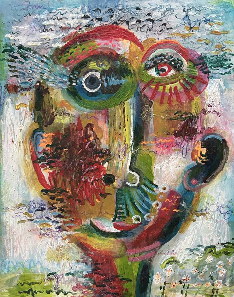 A small painting of a happy young person smiling and enjoying life. By JJ Julia.