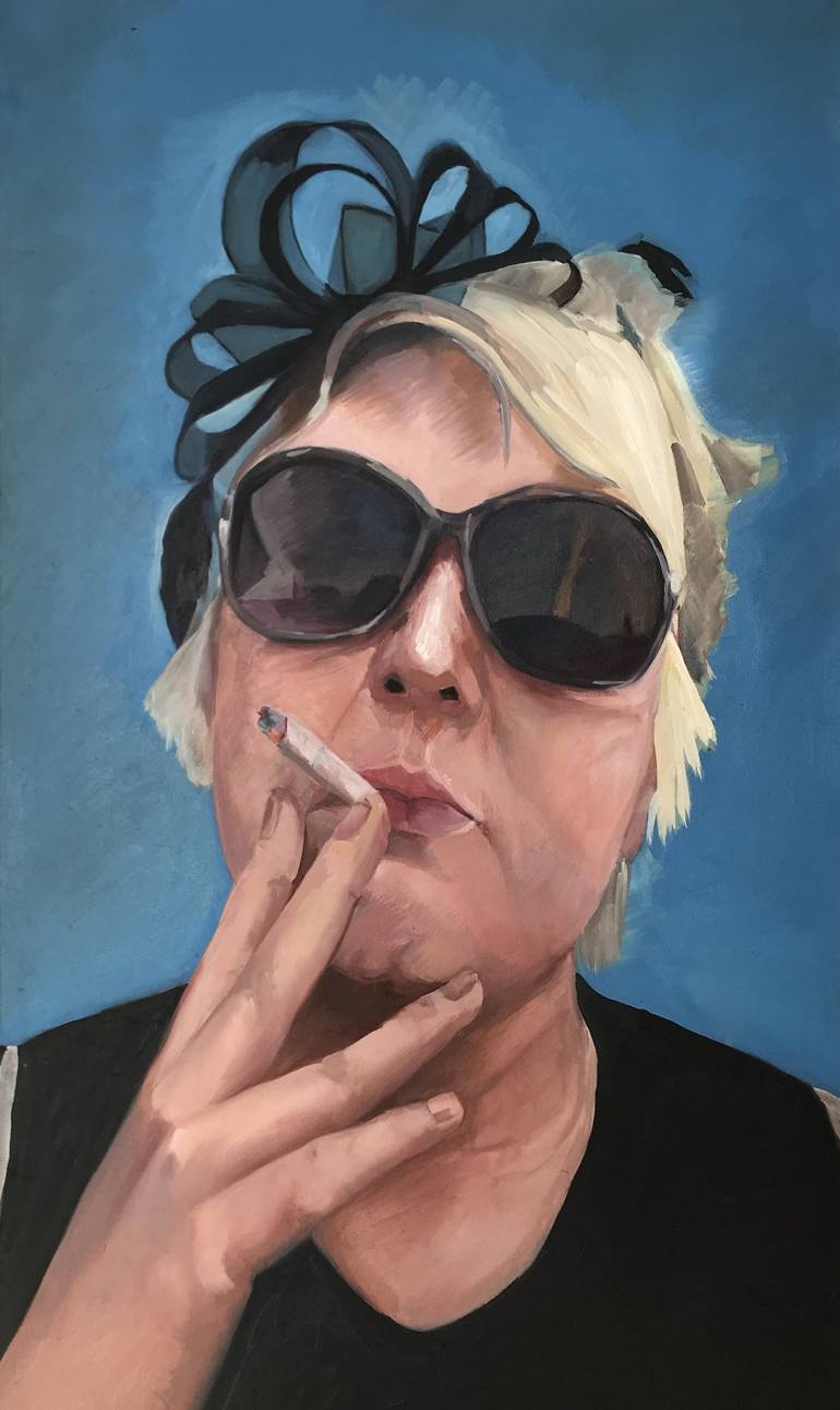 I was in Berlin in 2010 for two weeks. I saw this woman on the street, she was just standing in front of a building and smoking her cigarrette...I asked her permission to take her picture. Then I got back to Istanbul and paint this portrait.