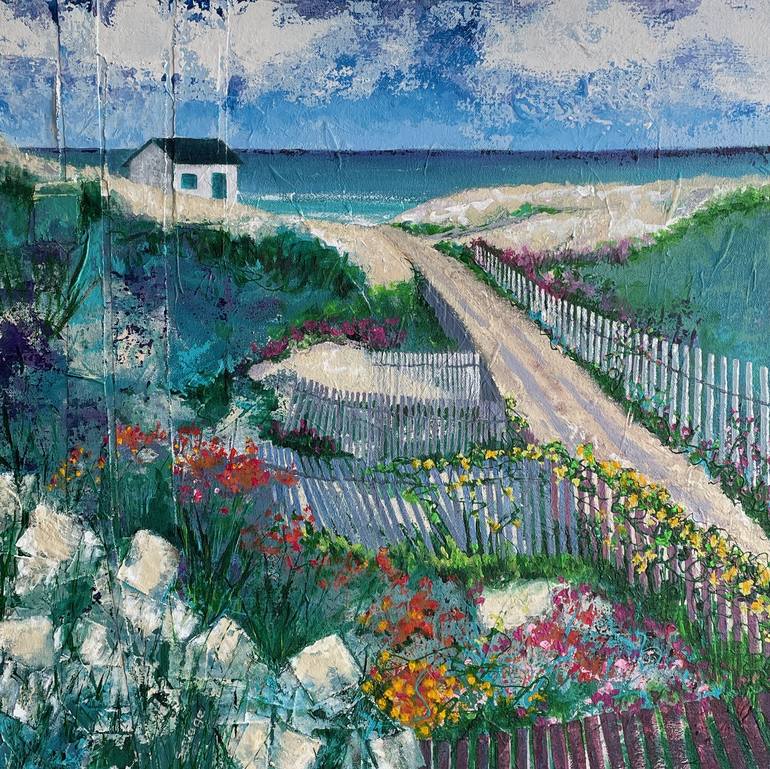 This acrylic with collage was inspired by the Maine sea coast and it's many different, diverse moods and experiences.