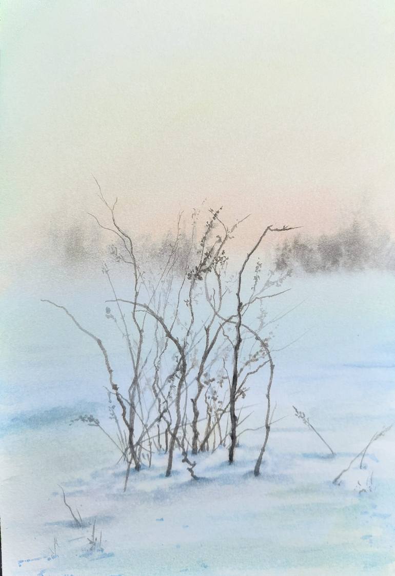 The bare bush that resists cold and winter conditions displays the scene of beauty in perseverance. I worked on 23×15cm 300 gr/m2 saunders waterford professional watercolor paper.