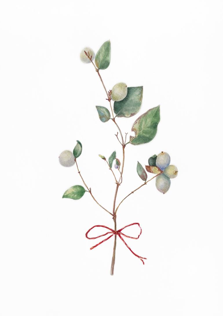The snowberry bush grows in my garden. I always admire its flowers, but the berries captivate me every autumn with their whiteness and perfection. This warm watercolour will adorn your home. It is painted from life with warmth in the soul and love for nature. My work here is a single copy of my u...