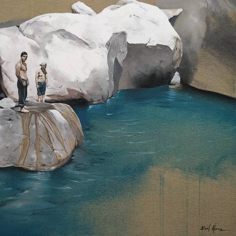 Painting and drawing is my LIFE. An innate law. Something burned into my DNA that traps me day after day. Something from which I cannot and do not want to run away. My job as a painter is my escape valve, it absorbs me and gives me the air I need to express my feelings and try to convey who I am, what I feel and what I am passionate about. All my work so far has revolved around water, a pure and necessary element for the survival of human beings and other species, a healing and purifying element of the body and soul. In my view, water has several similarities with the different ways of being or behaving that human beings have; We can be kind, pleasant, funny, meek like calm water or destructive, damaging and reckless like the runaway water or the raging sea. I am interested in the creation of my works with water as a pictorial element due to its difficulty in capturing it in a credible way and the wide range of representation possibilities it encompasses. Creating that binomial together with the human figure which also represents that close, mysterious, complex aspect, both in form and content and with which we all identify, seems very interesting to the viewer. Each of my series talks about different things or states of mind of people, personal or psychological aspects with which anyone can feel identified but always with a common element that appears in a more or less direct or protagonist way, water . Figurative Realism is the pictorial language with which as a painter I feel more comfortable and identified to develop my work, more myself. I try to evolve both in my work and technically to find my way, I let myself flow. Be water, my friend.