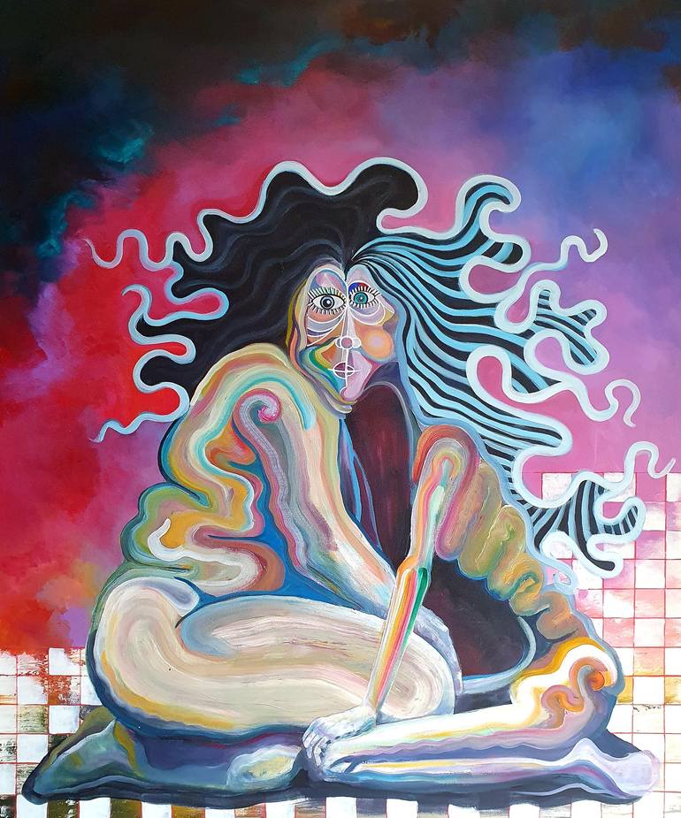Born in 1973 in London I am an artist and that is all that matters. Colour is the way forward and a metamorphic approach to the figure is my take on the world today. So, what are those odd little figures all about? I found a new phrase recently, ‘Psychological Cubism’ and I think that sums up what I’m going on about rather nicely. So Cubism in its purist form views things from multiple angles, giving you a 360 (almost topographical) view on a single plane. I do the same thing with psychologically fractured subjects. So I take the extremes of human emotion, and create expressive, fragmented figurative works that shows minds and bodies gripped by an overwhelming inner fear. A kind of forewarning about the fragility of the flesh and the solitude of humans in the face of technical progress. The paintings come about almost by accident, a provocation, a journey into the dark energy of the subconscious. This lingering mania and disorder igniting in our minds our own stories of the absurdities of modern life. Letting us search for the demons buried deep inside, while dragging the carcass of our prejudice and hatred behind us. Echoing the raw disturbance that bubbles under the surface of society. So I look at the anxiety, depression and uncertainty that stems from the constant pressure to present our ‘best life’. In a world preoccupied with technology, where we are connected to thousands, yet loneliness is commonplace amongst the likes, the follows, the hashtags. I seek new visual paths to unsettle the viewer, pushing what they are comfortable with. While the paintings maintain a hint of accuracy, they flit between controlled precision and unabashed exuberance, and there’s always an awkwardness to entering the paintings that provides an emotional rawness, a more elemental form of self expression that feeds off the nervous system in pure undiluted imagination. And then I wrap them in colour. Geometric Abstraction. Squares, circles and triangles, the other side of what I do. A long time ago I asked for some advice on where my work was heading and was told I was answering (quite proficiently) a question that was asked 70 years ago, and that I should do something more contemporary. So I did. A quick google search revealed contemporary art as a series of squares, triangles and circles, often interlinked with a bit of a scribble and maybe a patch of colour. So I embarked on a journey to see where it would take me.