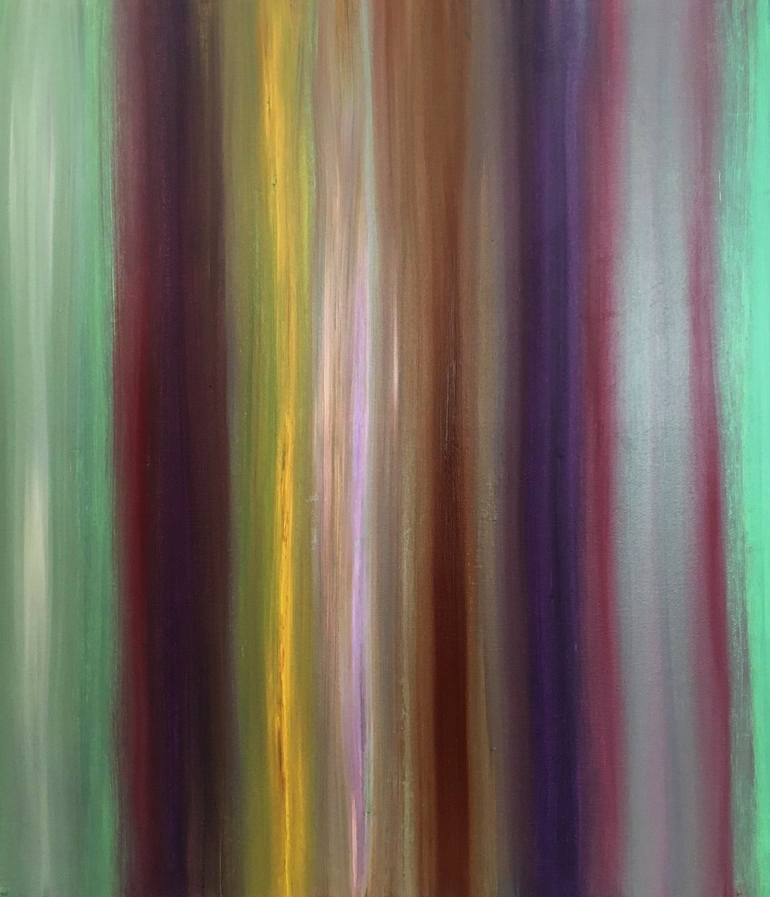 The stripe as a motif has been dominant in my art for years. Sometimes I paint in "hard edge" style, sometimes I do it in a softer way. This is an early attempt to paint the soft stipes.