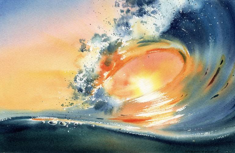 Original watercolor painting Medium: Watercolour on Paper Saunders Waterford 300g One of a kind artwork Size: 20,5 x 31 cm (unframed) / 8 x 12 in Signed on the front Style: Impressionistic Subject: Seascape 2024 Certificate of Authenticity is included Unframed
