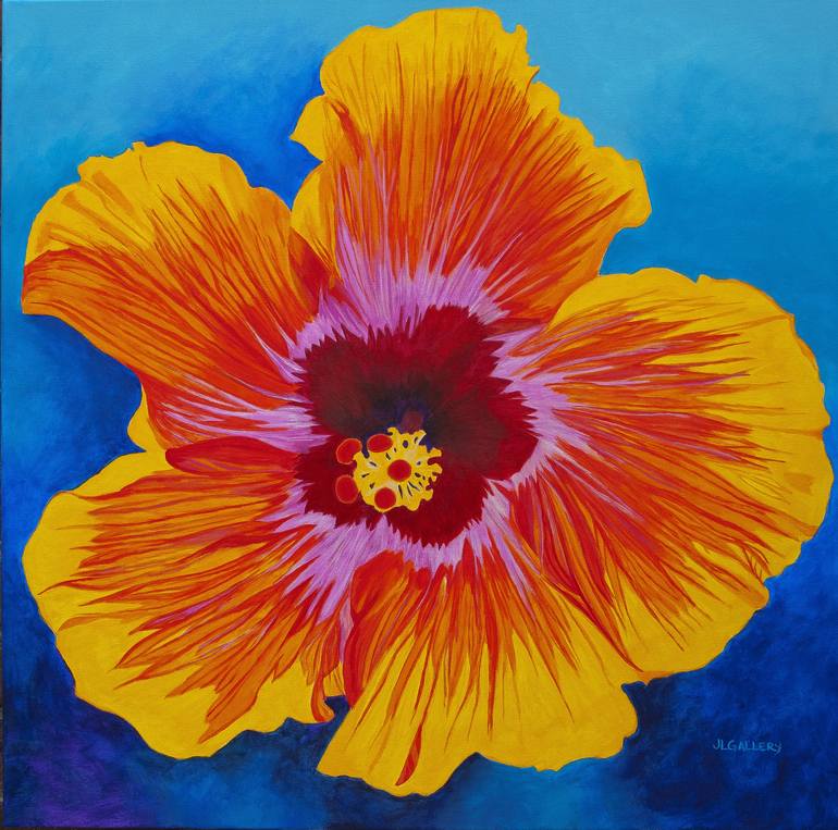 Joanne L Gallery has spent time in many countries over the past 20 years, including New Zealand, Australia, Fiji, Tahiti, Mexico and Hawaii and Mainland USA. I have found nature to be a source for inspiration no matter what the environment. Early in my career I created Photographic Paintings of my subject but have evolved to let the emotion of the environment and my feelings influence the colors and hues of my art. From the saguaro cactus of Arizona to the hibiscus of Port Douglas, Australia; I can remember the exact moment and feeling of the place in time. This is why I paint. Each piece brings back the specific feelings and immortalizes a flower that has long since faded and withered. My most recent work explores more stylized and bold colorization of my subject matter. This is visually stunning, is more provoking and is expanding my comfort zone. Shapes of light and color are incorporated into my more recent contemporary scenes and take me to another place.