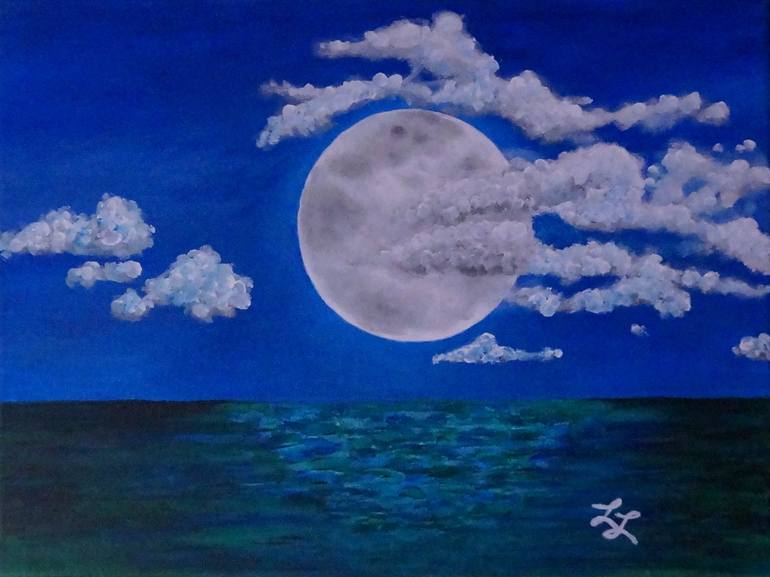 Lonely and almost adrift on the ocean sits our Lady Luna... She is not completely alone as a few clouds come to cloak her... She still sits in the silence and you can feel the tranquility she feels...The water reflects all of her emotions and its clear there is no better place to be then with the So...