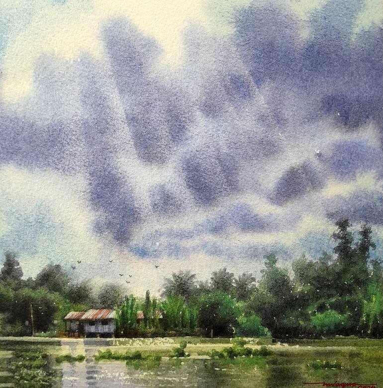 This painting is done based on my sketch, photograph as my reference during my fishing trip and painted in my studio using high end watercolor materials and paper.