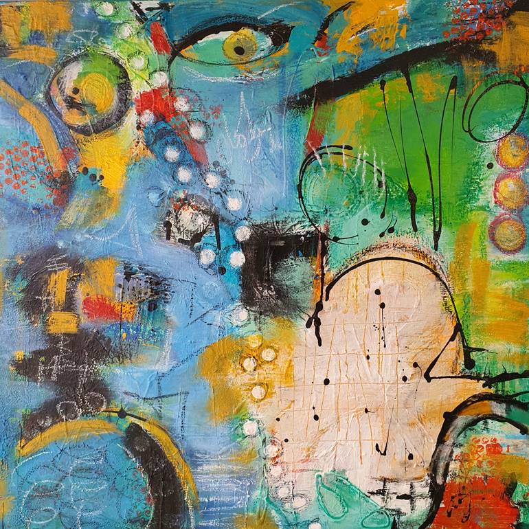 "Someone is watching you" is a vibrant tapestry of endless blue and green hues, swirling and melting into one another like the depths of an unseen ocean or the shifting colours of a distant galaxy. The layers of cool tones create a sense of infinite depth, drawing the viewer into an enigmatic, dream...
