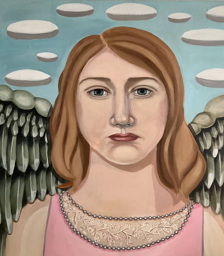 Something about Angels , there is I think definitely something about them . They are everyday people , who you meet or know , so many lovely people who could I believe bare wings . I painted this in a mix of both classical and modern style , I felt when I started her she needed to be in both styles ...