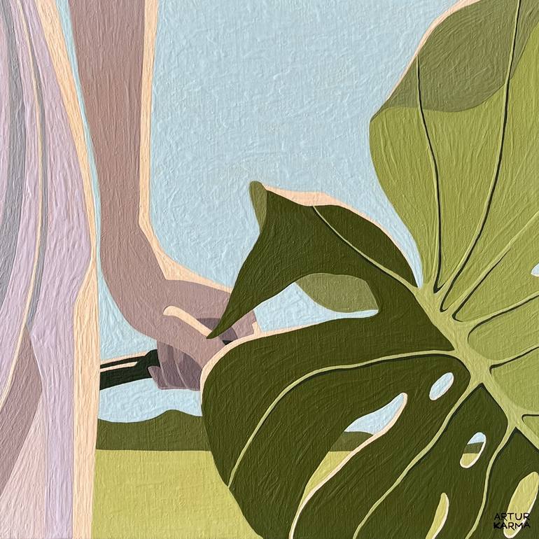His paintings are a kind of play with the viewer. He depicts only the "shell", the surface outlines of the images, and the viewer "finishes", thinks out the details of the picture on his own. He conducts a dialogue with the viewer: "Do you remember those fish in the pond?", "Do you remember that mesmerizing sunset?" The images from his paintings are familiar to everyone and it allow you to plunge into memories, remind you of some moments. The philosophy of these paintings is that it is enough to show only the basic forms, the rest will be recreated in the viewer's head. In his works the artist expresses personal impressions and view on surroundings, beginning from the borderless natural spaces up to tiny tree leaves or birds’ color. He turned his experience in the graphic design into a painting practice. He mainly focuses on the shape and geometry of a particular object, while excluding the abundance of details. Simple, recognizable forms are tempered with abstraction in the author’s artworks. The crucial working principle is all about simplifying and redefining of everything seen.
