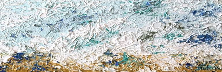 Sounds.Ocean.Vol.106 - Contemporary Original Abstract Seascape Painting - Heavy Texture Impasto: Blue, White and Ocher. Signed on front. Painted edges. Artwork on supported wooden frame - stretched canvas. Wired and ready to hang, no frame needed.