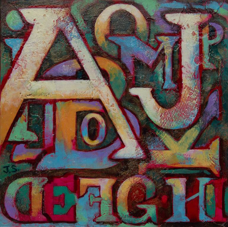 The alphabet is composed of beautiful ancient shapes. They grew out of pictographs, and were honed over the millennia. In the summer of 2014, my plein air sessions were repeatedly interrupted by afternoon thundershowers. So I holed up in my studio and explored these forms, using layers of texture...