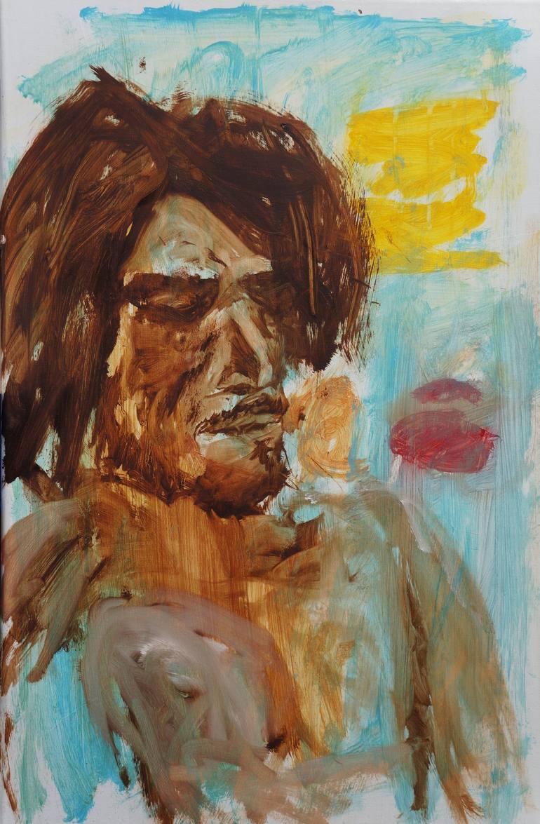 Portrait of Danieli, under studio lights oil on paper laid on canvas 60x40cm / 23.62x15.75 in