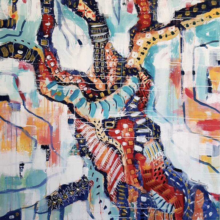 My preference for nature and the outdoors, drive me to natural colors and sunlight themes. Although not directly, my painting deals with environmental issues and the dangers of climate change, seeking a constant dialogue with nature, especially plant forms, on which will probably depend much of our future survival as human beings. Actually working also in product-adv, brand art, and greeting card designs as I'm very interested in growing my activity in the Art Licensing field. As a free-lance Illustrator I have been working for about 12 years for book publishers (children's books, textbooks), and design studios, in Italy and worldwide. I love mixing traditional techniques of illustration, and digital composition. Inspired by nature, its shapes, and colors. As a painter/artist I started painting large abstract canvases as little sizes on paper, about two years ago (2018), predominantly with acrylics. I like working more freely and painting as an artist makes me feel the work more mine!