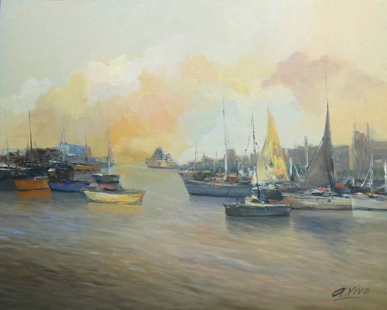 "Painting the sea and sky provides me with the perfect excuse to express myself in my love of color and bold strokes. The abstract aspect of my paintings enables me to experiment and get lost in the imagery it evokes, while allowing the viewer to interpret the work through their own feelings and emotions. There is nothing shy about the sea nor in my work!", says the artist. Having honed his craft for more than 30 years, Vivo's body of work encompasses various themes, from realistic and semi-abstract landscapes, seascapes and beaches, to abstract human forms and shapes. His preferred technique is oil on canvas or board using palette knives and brushes, with bold strokes and colors. For many years, he held the position of Director of The Painters & Sculptors Association of Uruguay. Vivo currently heads his own atelier, located in Montevideo, where he teaches art and exhibits his paintings. His work is included in private and corporate collections worldwide. He has been awarded several prizes at art contests for paintings, drawings and installations. He has illustrated books and book covers.