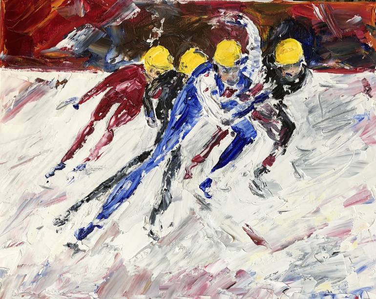 Capturing the speed of the skates with bold colours and brisk palette knife work