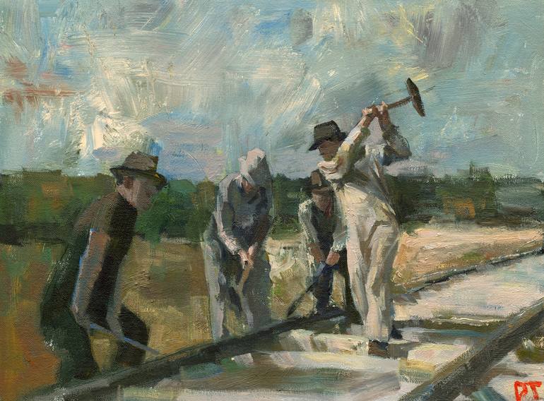 Spike Maul is part of a series depicting jobs and people of hard labor. As in most of my paintings, I use subdued colors and loose brush strokes in order to create the mood and feel of spontaneity. Art buyers may see a symbolic reference to prominent 20th century American painters like George Bel...
