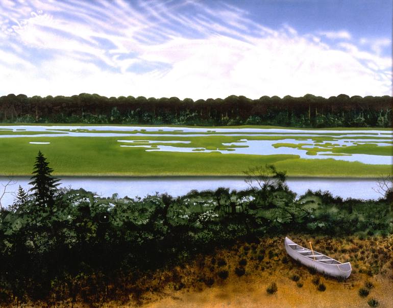 This painting reflects the tranquility of canoeing and kayaking in a peaceful, and secluded body of water. In this case it's the beautiful Nissequogue River on Long Islands North Shore. I've spend much time on the water enjoying the quiet and the solitude it has to offer. The river can be a mystical...
