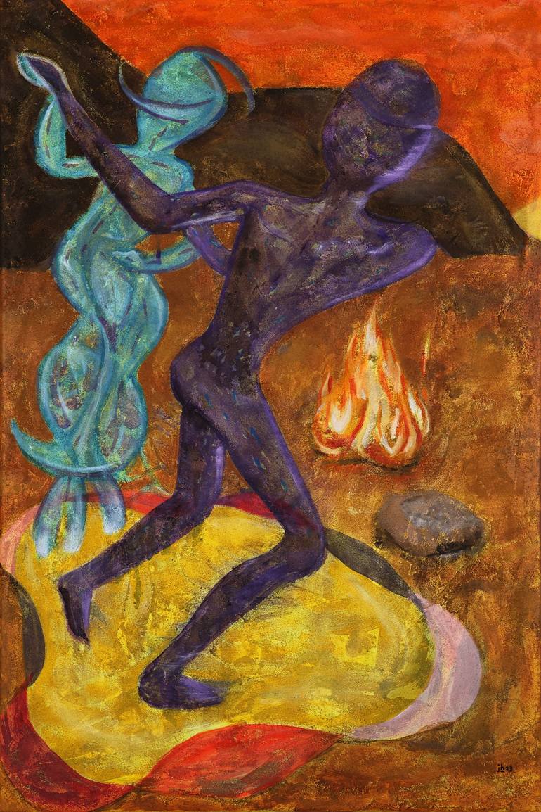 This painting expresses an overlay/overlapping of realms, and life comes into the dense. It is about looking back to where we came from in the spirit realm. I had to work with how to develop the painting because sand effects the behavior and feel of paint. I had to decide should it be facial feature...
