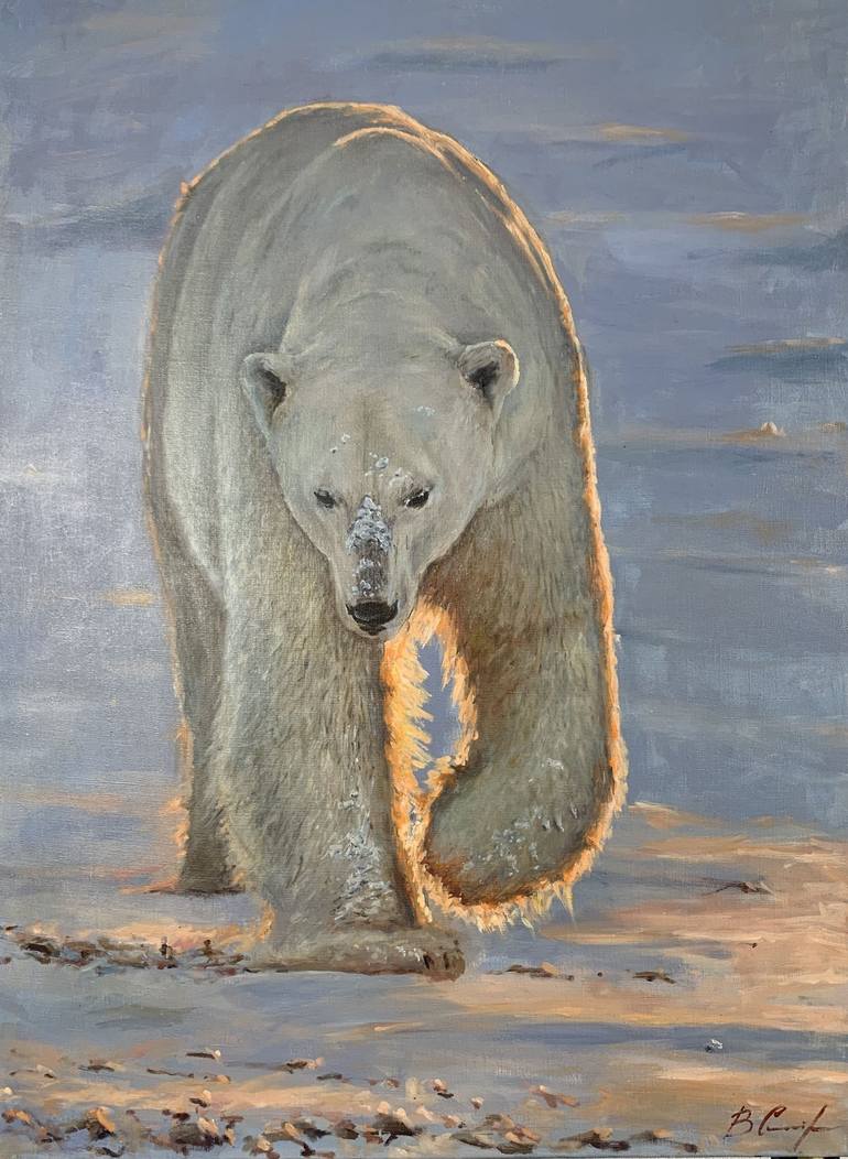 The painting Spirit of Arctic is painted in oil. Imagine the challenges this bear faces every day! But he still continues to face challenges, problems and adventures. That's what life is all about, it makes him stronger and more resilient. In this picture I wanted to show all the power and strength ...
