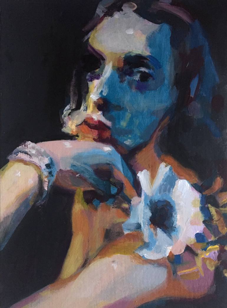 On a moody afternoon i painted this portrait . i like to paint little intimity paintings It is a little bit like a selfportrait. I painted with oils on a thin wooden board. the board has to be hanged on a nail directly ( there are hangers in the back ) on the wall and it looks lifted (like1 cm out ...