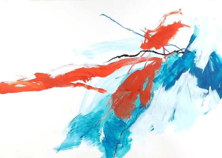 Mix gesture, line and space. Acrylic paint and oil stick on 200 g watercolor paper.