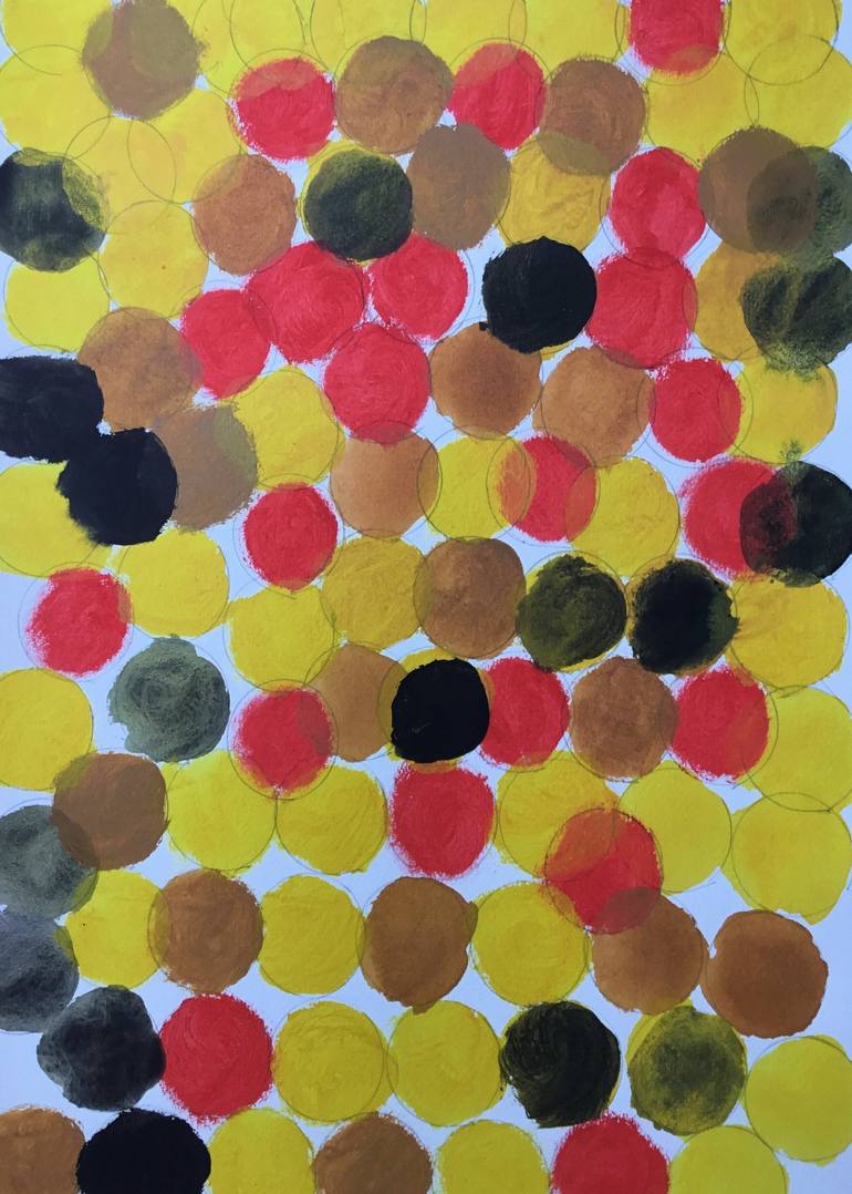 Spots, an obssession. Yes, it could be. Inspired by Damien Hirst spots series, Spots Yellow was painted with this obession in mind. This was painted with acrylic on 300gr Fabriano paper, 50% cotton with neutral ph.