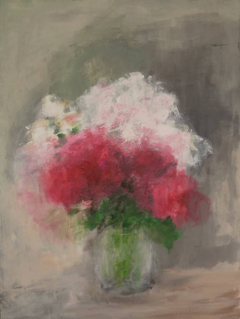 Large impressionistic painting of flowers. High quality gallery wrapped canvas with 1.5" deep stretcher bars, sides painted in black - no framing required. Canvas will arrive wired ready to hang.
