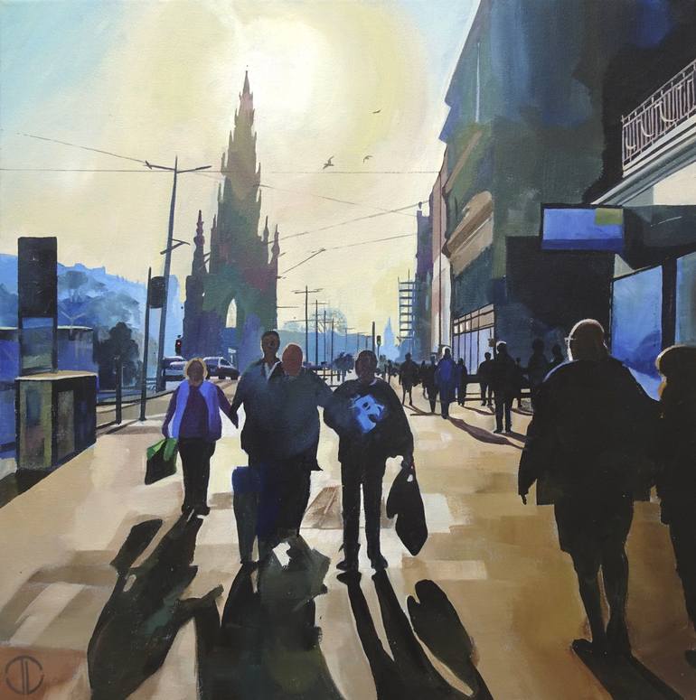 Early spring sunset on the busy shoppers of Princes Street Edinburgh 2022