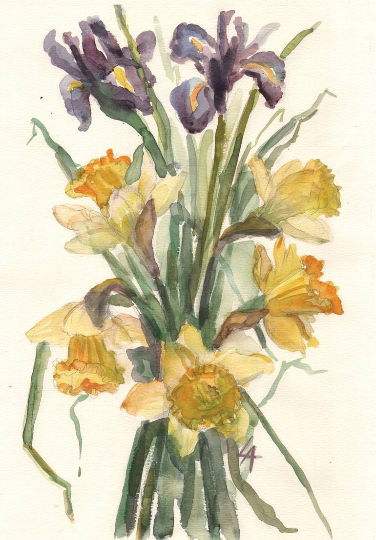 This original watercolor painting, "Spring Awakening", captures the joy and endless beauty of the season. The artist finds endless inspiration in the rebirth of spring, from the fragrant air to the vibrant colors of nature. Flowering plants, like the daffodils and irises in this floral piece, embody...