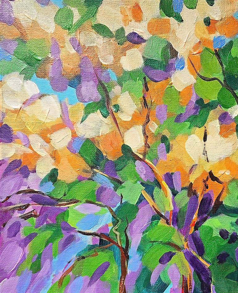 Abstract depiction featuring a variety of herbs and flowers in an expressionistic style. At the forefront of this composition are jungle leaves and flowers. Executed with acrylic paints that resist fading, the artwork adorns a 20х25 cm canvas, enriched with drops of affection and safeguarded by a p...
