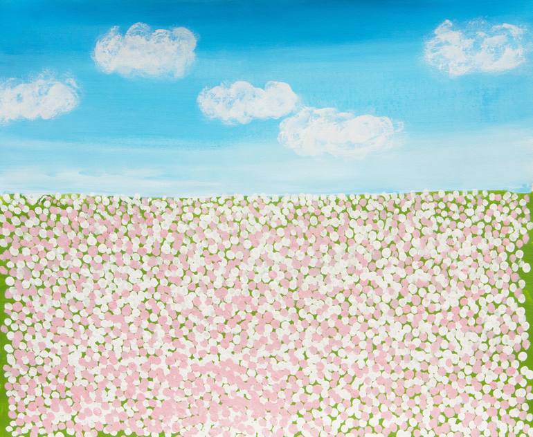 Spring landscape with meadow in blossom acrylic painting on unstretched canvas. ships in a tube. Picture has 5 sm empty space on all sides to connect to frame. This is 8 picture of seria "Spring meadows in blossom on canvas". All pictures of this seria in collections: "Spring acrylic and oil on ...