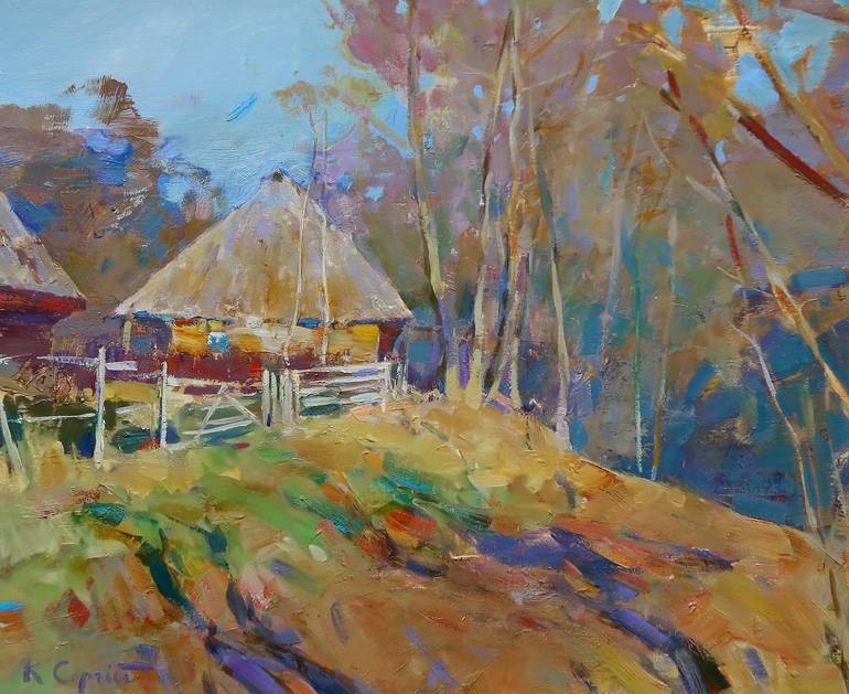 ARTIST: Sergiy Kovalenko TITLE: «Spring smoke» MEDIUM: Oil on Canvas YEAR: 2020 DIMENSIONS: 50 х 60 х 3 cm / 19,7 x 23,6 х 1,2 in WORK: Original Painting, Landscape Painting, Hand Painted Art COLORS: Sky Blue, Lavender, Ochre, Golden Yellow, Forest Green, Deep Purple DESCRIPTION: This captivating ...