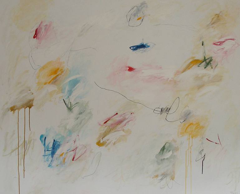 This pc was inspired by a gift of flowers in the dead of winter. The smell of the flowers was intoxicating after 4 or more months of dark and cold . The explosive bouquet of the living flowers was so amazing that it made me want too paint the smell and the essence of the flowers in this bright whi...