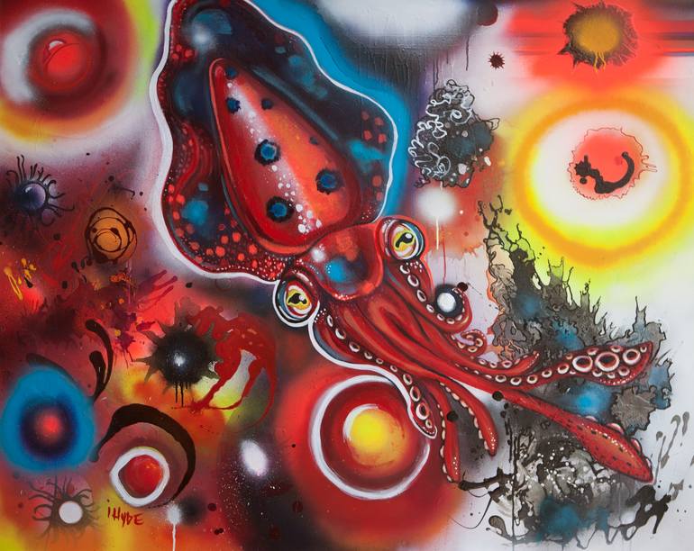 Squink is a large-scale, acrylic painting. created in Ingrid Hyde's signature Pop-Fusion style, Pop, abstraction, and graffiti. This painting demonstrates a variety of contemporary and experimental painting techniques.