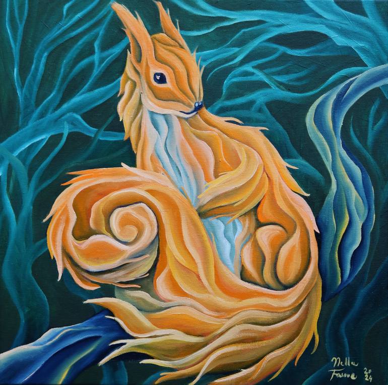 Bring a distinctive and expressive piece into your art collection with this original oil painting on canvas, measuring 40x40 cm. Created in 2024, this artwork is part of the Enchanted Forest of Bohemia series, inspired by the energy and presence of woodland creatures. The free figurative style and d...