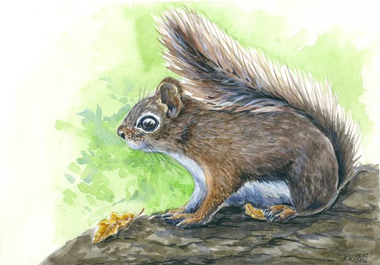 Squirells are so cute and I love painting them. Squirrel on a tree painted with watercolor and watercolor pencils on Fabriano Artistico watercolor paper.