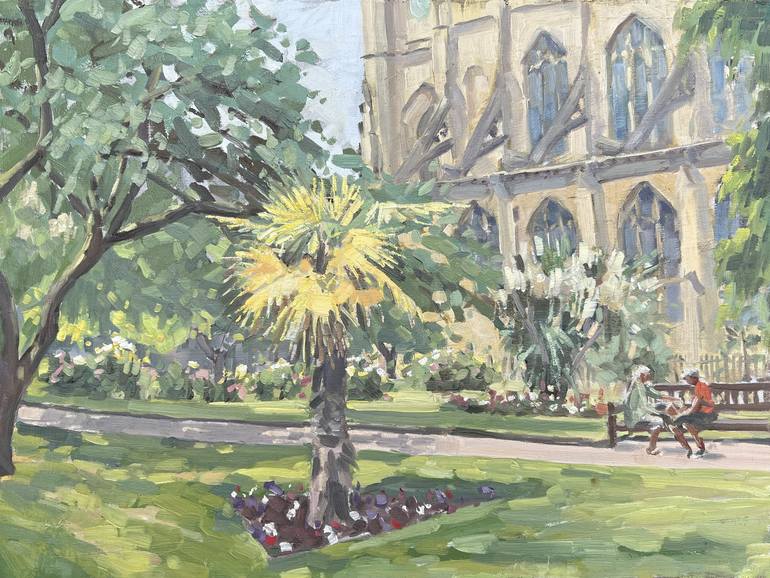 This is a plein air painting created in June 2023, which earned 3rd place in the Chelsea Art Society/London Plein Air paint out competition. It shows the beautiful little oasis of St Lukes Gardens and church not far from the King's Road. 30 x 40 cm. Oils on panel.