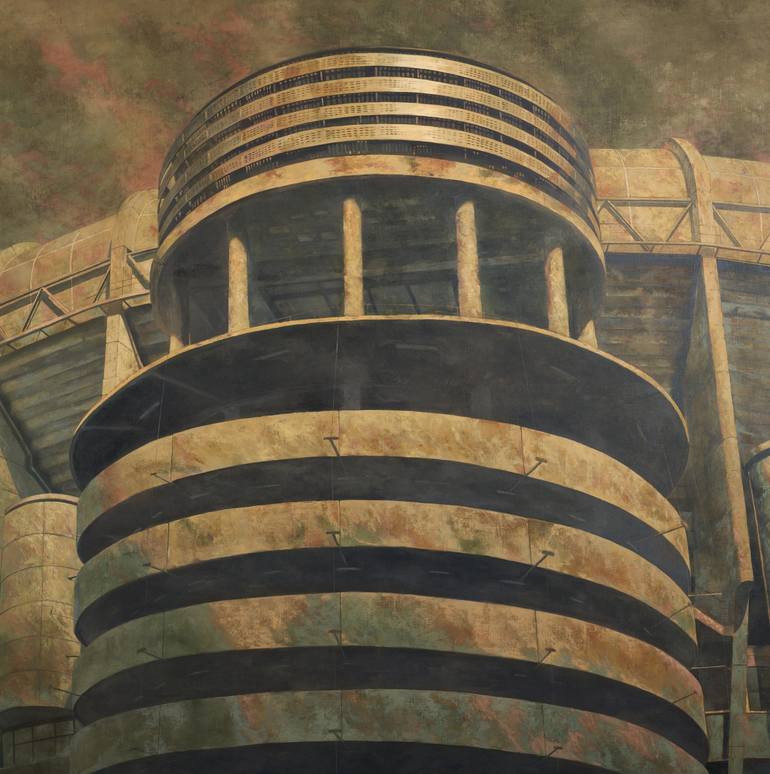 This picture represents the south tower of the Santiago Bernabeu football stadium, Soccer field of Real Madrid soccer team, located in Madrid, Spain. It is a fragment of the architecture of the Stadium and I conceived with a different color to the original one, being this one in its construction of ...