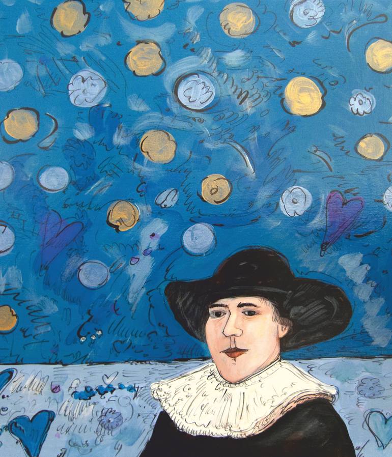 Fiorentina Giannotta (New York, 1964). Fiorentina Giannotta's poetics is characterized by a mix of history, irony and a lively exploration of colors and materials. Her works celebrate imperfect and ironic characters, immersed in imaginary and decorative landscapes, which invite the viewer to a visual and emotional participation, rather than a mere contemplation. Giannotta's characters, often inspired by historical figures or fictional protagonists, are conceived as "imaginary ancestors" with whom to establish an emotional companionship, creating a sense of personal connection and almost pleasant obsession. This choice is influenced by the ironic potential of the characters themselves. Elements such as lace, buttons, ribbons and bows add humor and lightness, making the works accessible and fascinating. Giannotta's influences range from great painters to novels and fiction, combining to create figures that express emptiness, rebellion and imperfection. Flowers and slogans are recurring elements in her works. Flowers, used as a decorative background, create artificial landscapes that reinforce the idea of an imaginary world. Slogans, such as “live, laugh and love” or “I am not the Mona Lisa of the Louvre but the Mona Lisa of your home”, add strength and participation to the works, involving the viewer more. Giannotta experiments with various materials in addition to classic acrylics, using industrial paints that allow her to play with consistencies and transparencies. Her favorite colors, such as Nissan green, Barbie pink, Barragan pink, butter yellow, oyster white and iridescent white, allow her to obtain both watercolor and thick effects. This technique, together with the small squiggles made with ceramic brushes, gives her works a three-dimensional and dynamic effect, further accentuating the vitality and energy of her compositions.