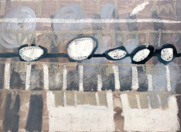 Minimalistic abstraction on Fabriano acid-free steam, made with Talens gouache pigments. Simple and noble color combinations. Repeating patterns create a rhythmic composition typical of this series. The title of the series of stages tells the story of a cycle of repeating events.