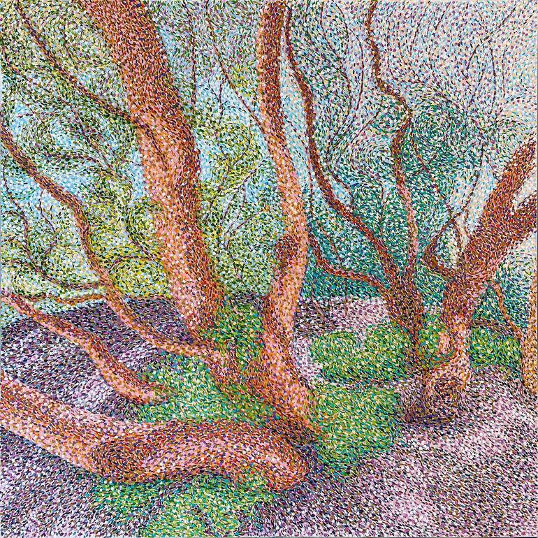 This is the first painting in a new series I’m starting based on my recent trip to Ireland. The painting depicts a group of trees set in the gardens at Blarney Castle. The trees are brightly colored twisting and interlaced. The flowers had just fallen and the dappled sunlight gave the ground a brill...