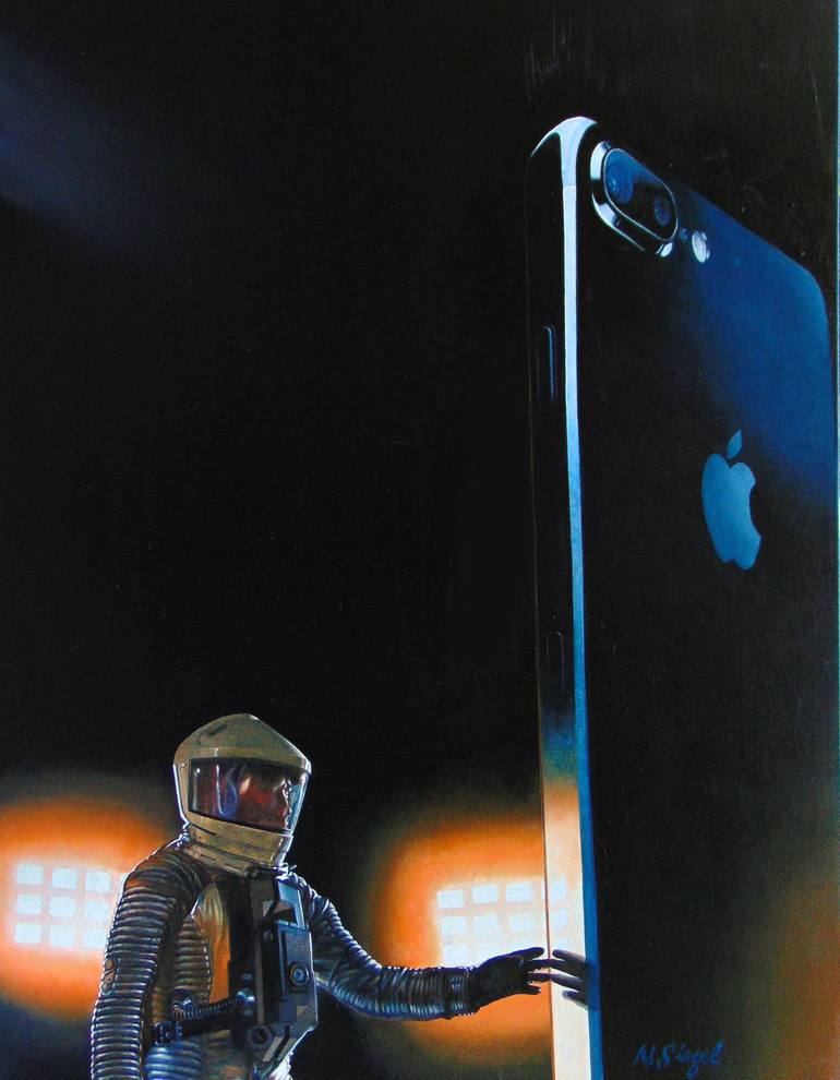 Stanley Kubrick's 2001 A Space Odyssey still holds up as the iconic monumental film it is. The mystery of the monolith still intrigues. With a little tongue in cheek brush work I made the smart phone as today's cipher for today's monolith. I threw in the wonderful line from E.T. substituting Stanley...