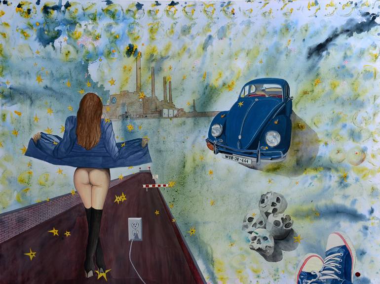 The story of Grimm's "Star Money" ( "Sterntaler ") inspired me to this collage with elements of the Volkswagen Factory in Wolfsburg close to the former german border and the old Beetle.