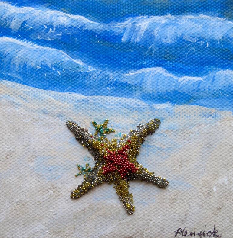 I always loved going to the beach and finding these beautiful creatures on the sand at the waters edge. Metal beads were added to give the subject a unique texture and dimension. The canvas is painted on the edges and does not need a frame. It's ready to hang. In making the starfish series, I hope t...