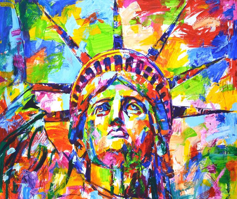 Statue of Liberty 3. In New York, it is considered the main symbol of the United States. Symbol of a happy life. Written in a modern style with brushes and a palette knife. Pop art, expressionism. Modern. abstract. realism. A bright palette of colors is used: red, yellow, green, pink, blue, orange. ...